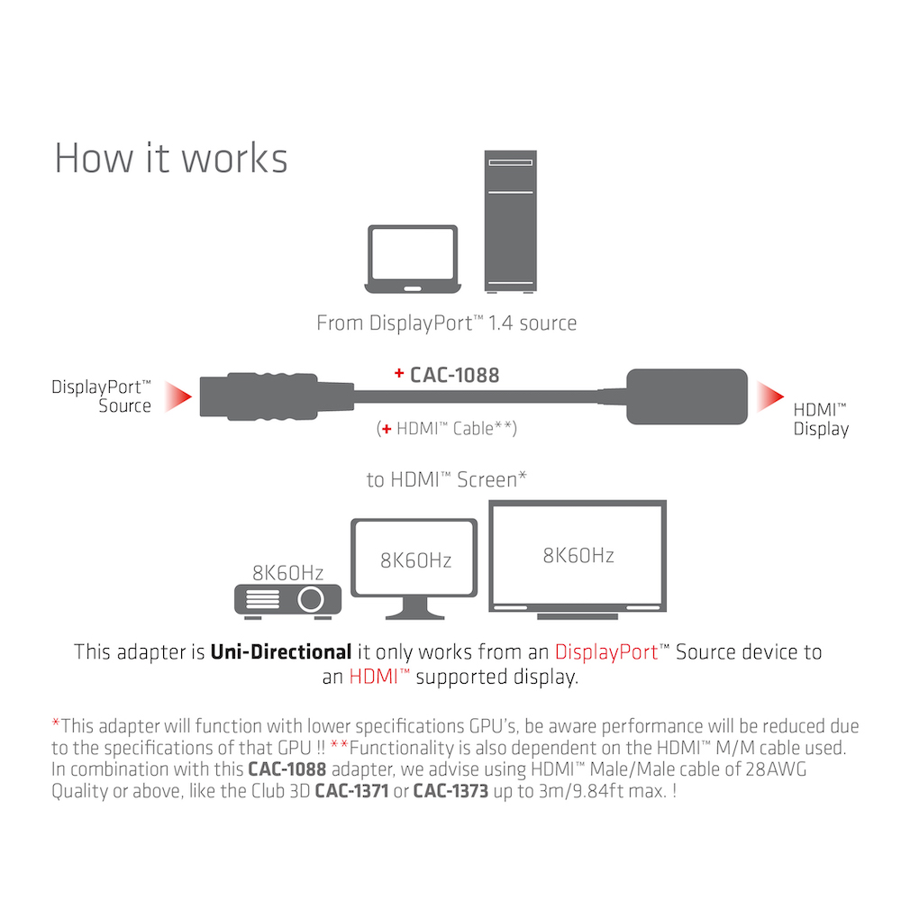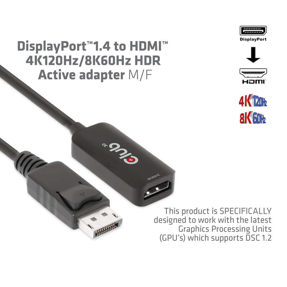 Adapter DisplayPort 1.4 => HDMI *Club 3D* 4K120Hz/8K60Hz HDR aktiv