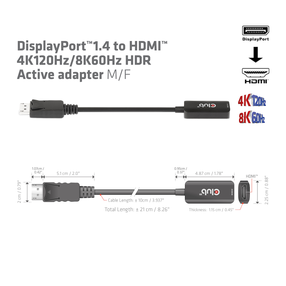 Product information "Adapter DisplayPort 1.4 => HDMI *Club 3D* 4K120Hz/8K60Hz HDR aktiv"