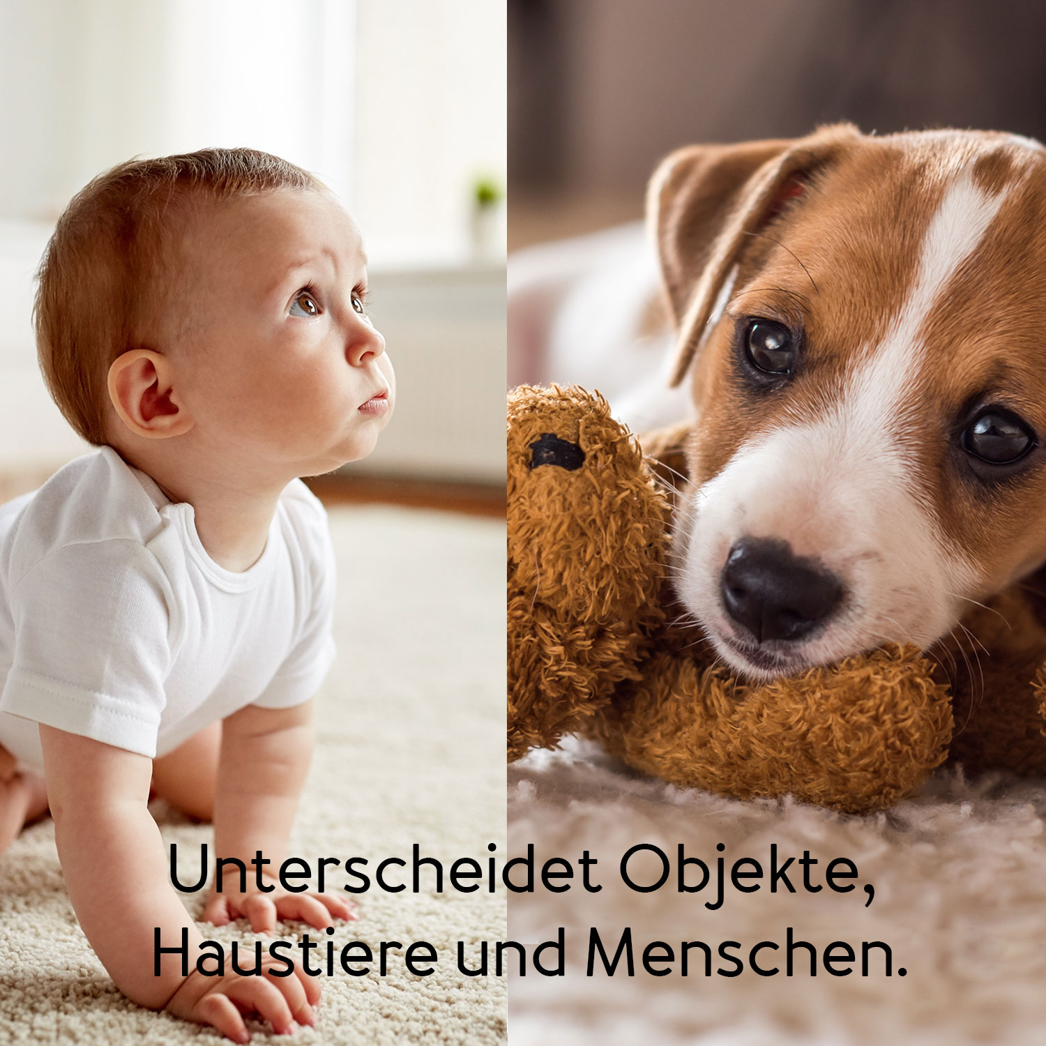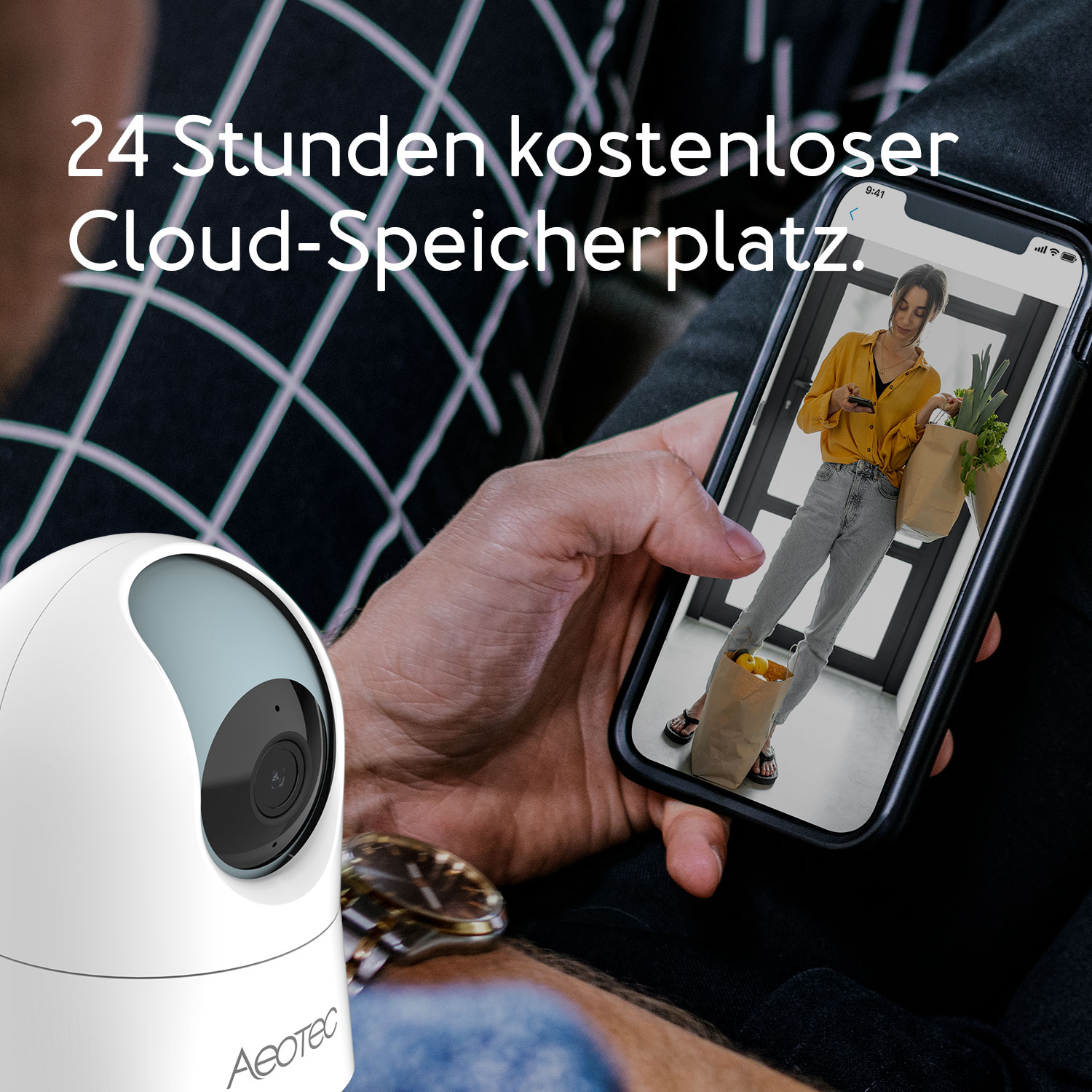 Ein Blick und Sie sind zu Hause. Mit der Full-HD-Kamera Aeotec Cam 360 erhalten Sie auf einen Blick eine 360°-Ansicht Ihrer Räume. Lassen Sie sich eine detaillierte Ansicht dessen zeigen, was Zuhause bei Tag oder Nacht vor sich geht. Durch die erweiterte Objekterkennung werden Bewegungen erkannt, sodass Sie sofort alarmiert werden. Die Cam unterscheidet dabei zwischen Personen, Lebewesen und Objekten.