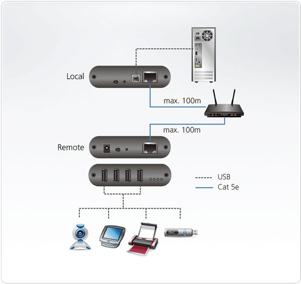 Aten USB-Extender,4-Port USB 2.0 Cat 5 Extender over LAN