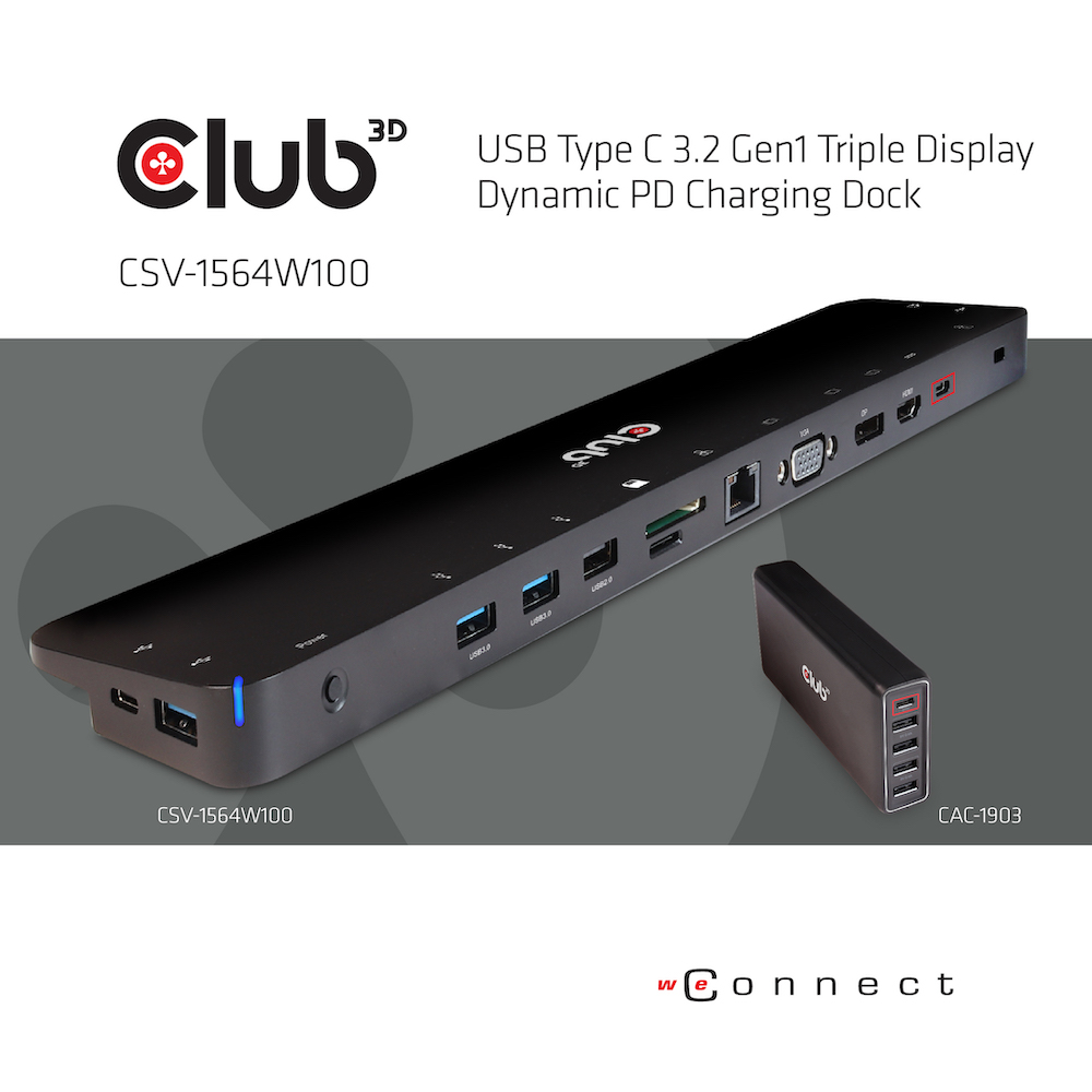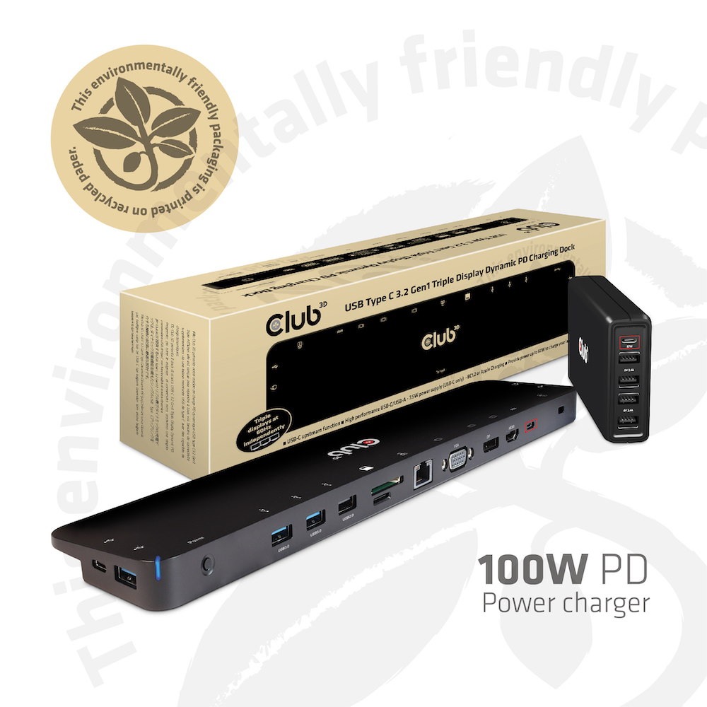 Club 3D Dockingstation - USB 3.2 4K Triple Docking Station 100W *schwarz*