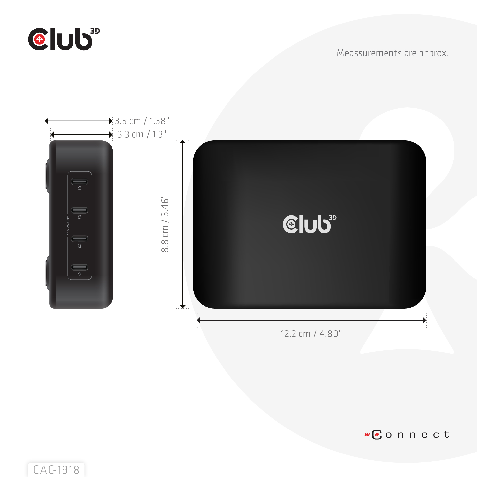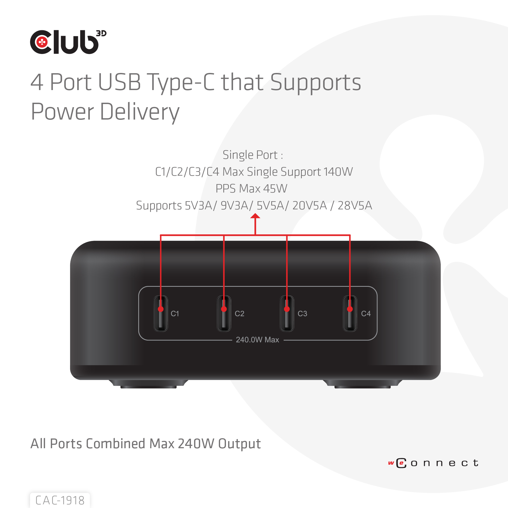 Club 3D Netzteil Reiseladegerät 4-fach - 240W - 4x USB-C