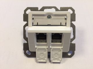 Product information "Dosen TP,UP,2-fach,CAT6A, Keystone Slim-line, Alpinweiss, Synergy 21/Telegärtner, 30Grad für runde Kanaleinbaudosen,"