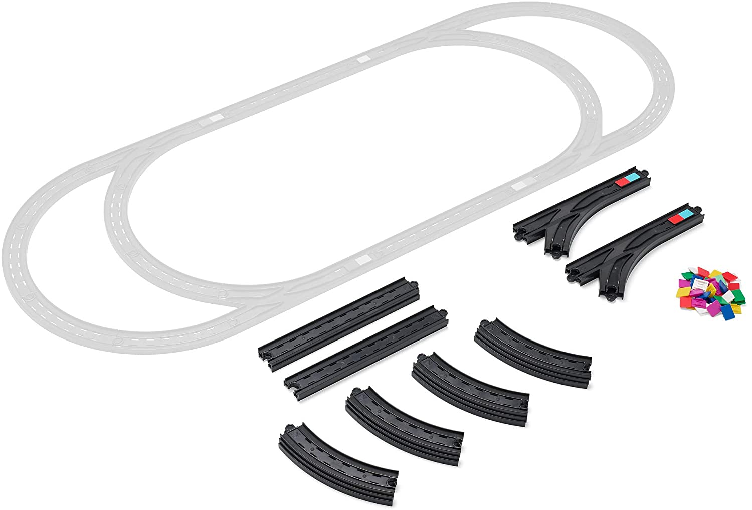20 Gleisstücke (4× Geraden, 4× Weichen, 12× Kurven)