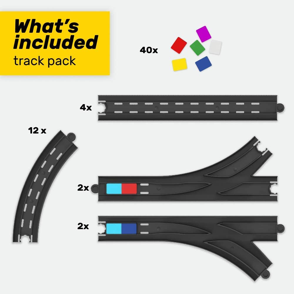 Mit dieser Packung kann man die Anzahl der Schienen und Action Snaps verdoppeln, die im Smart Train Starter Set enthalten sind.