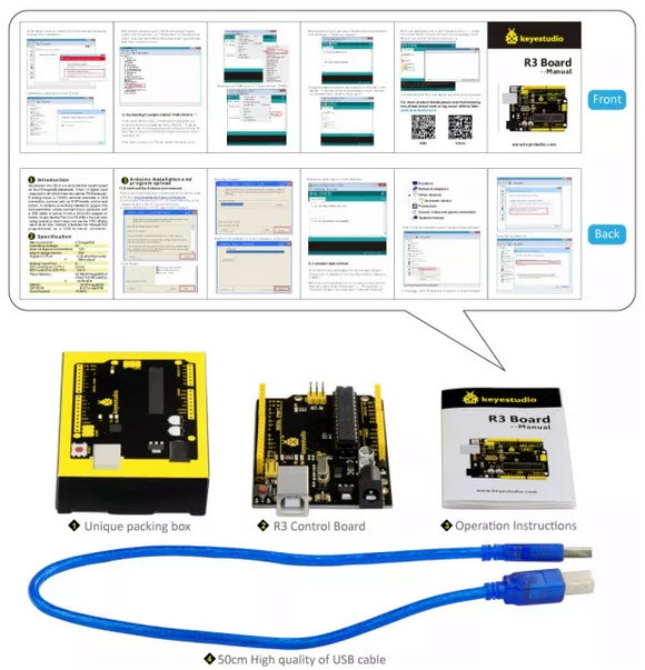 Keyestudio UNO R3 Development Board Compatible With Arduino Uno R3 +USB Cable