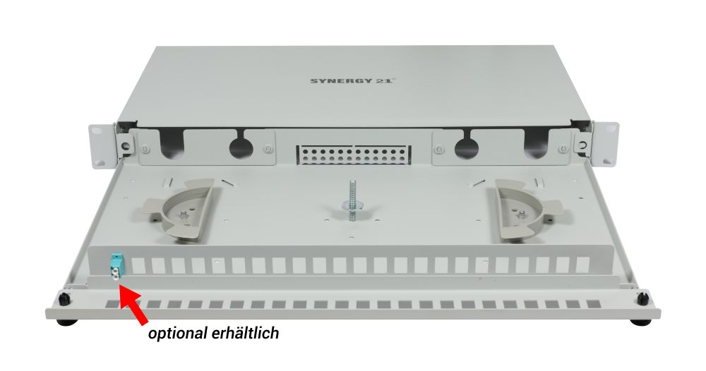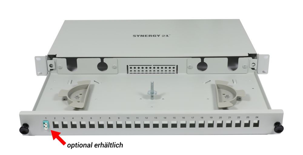 1x LWL-Patchpanel für 24xLC-Duplex-Buchsen, 19"/1HE, ohne LC-Kupplungen, Lichtgrau, Synergy 21,