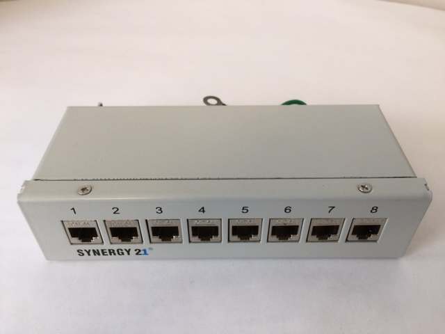 Patch Panel 8xTP, CAT6A, incl.Keystone, Slim-line(20mm), Aufputz Metall, Lichtgrau, Synergy 21,