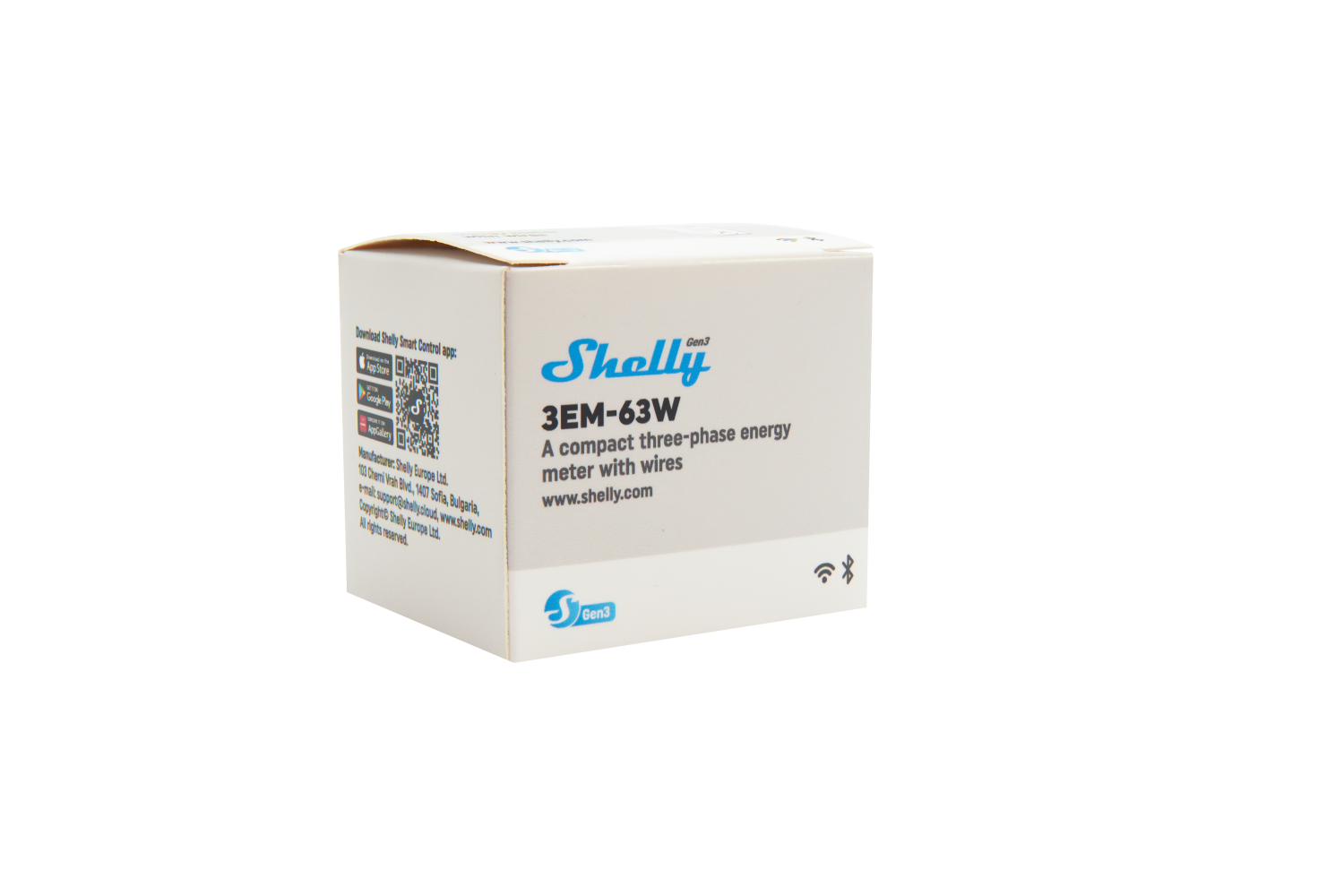 Product information "Shelly · Hutschiene · "3EM-63W Gen3" · Stromzähler"