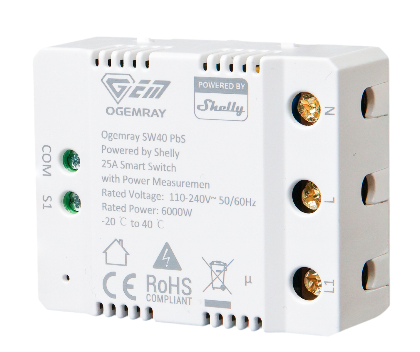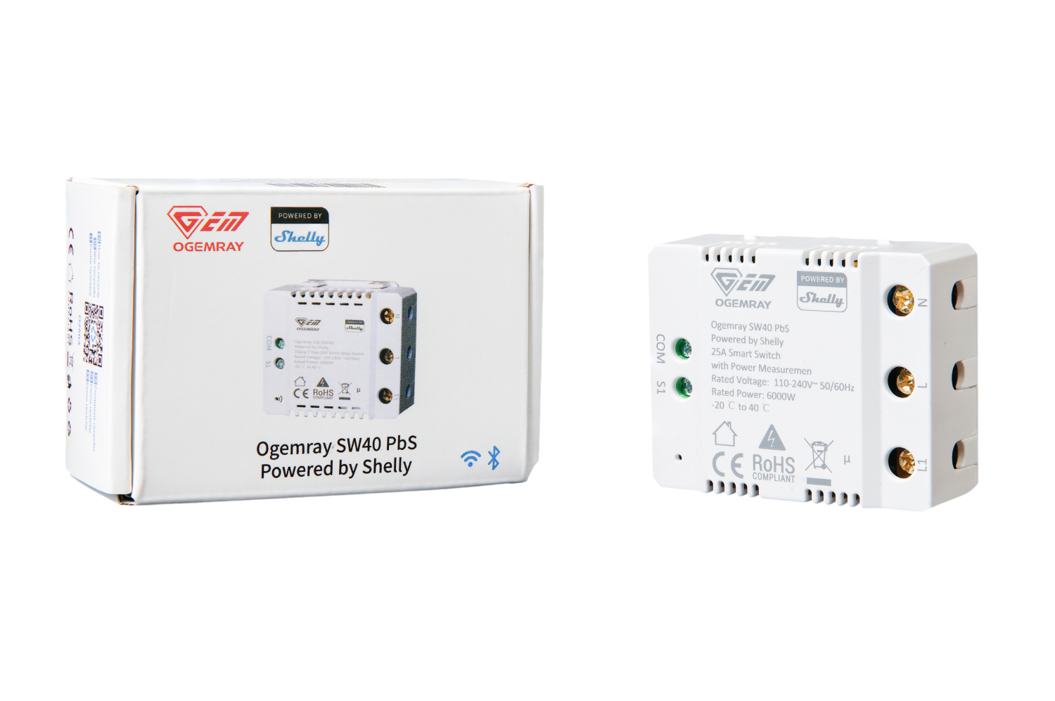 Product information "Shelly PbS · "Ogemray Smart Relay 25A" · Großgeräte Relais · max. 25A · Messfunktion · WLAN · LAN · BT · SW40-25A-Relay-PbS"