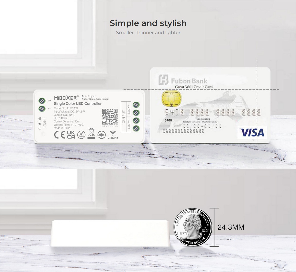 The FUT036S LED controller is the ideal solution for smart lighting control with single-colour LED strips - simple, reliable and flexible.