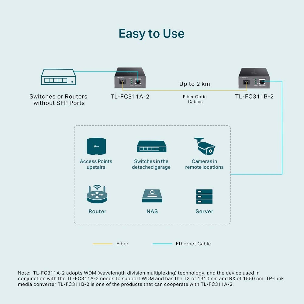 SPEC: Full-duplex, Tx:1550 nm, Rx:1310 nm, Up to 2 km, Chassis TL-MC1420 rack-mountable