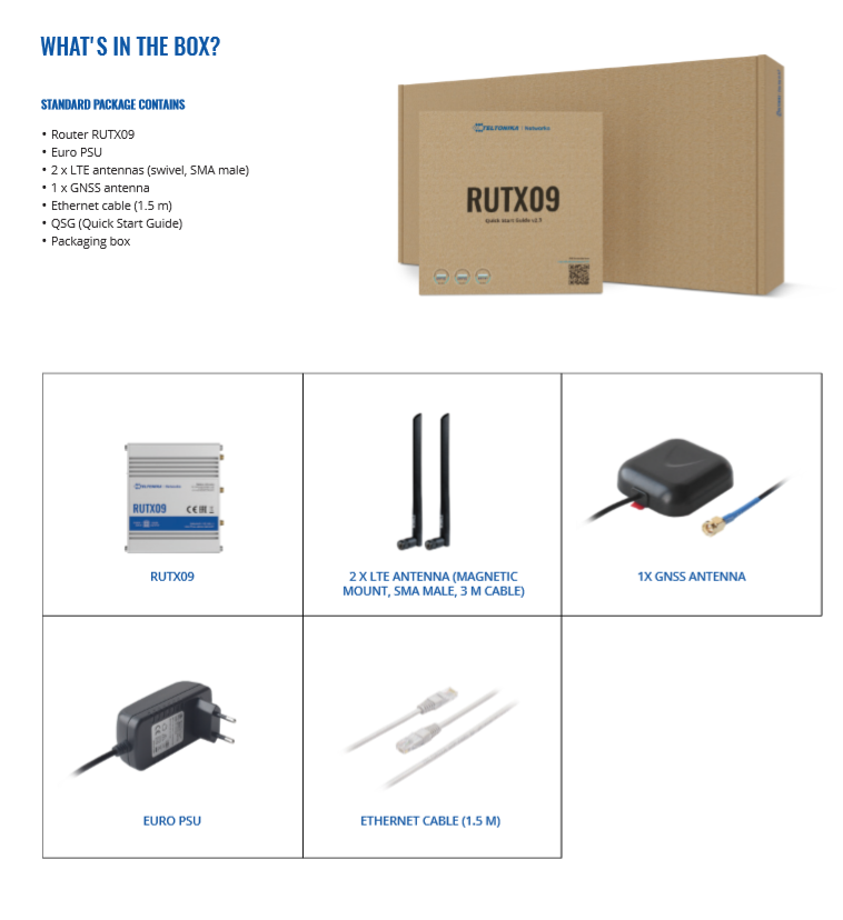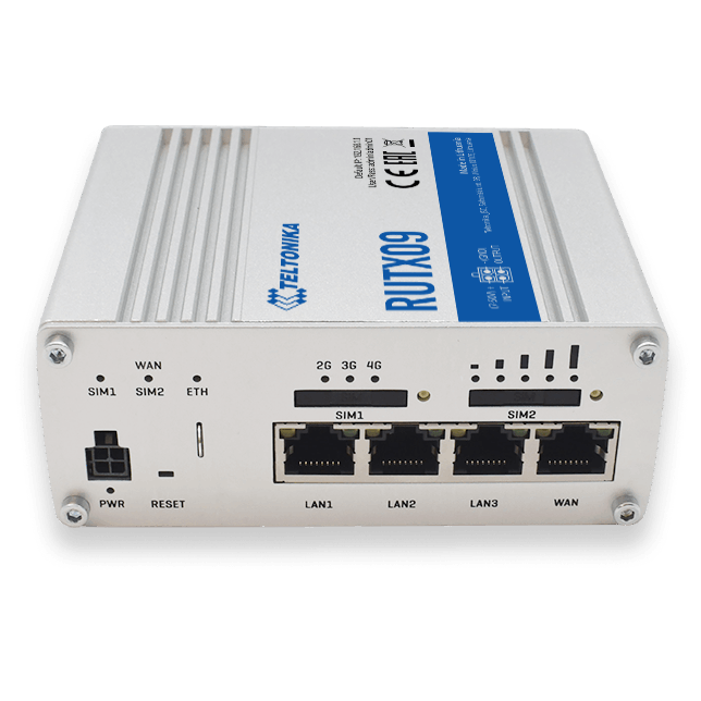 This powerful LTE router is designed as a Main/Backup Internet source where steady connection and high data throughput is required. Equipped with Dual-SIM and 4 x Gigabit Ethernet ports. RUTX09 has all advanced RutOS software and security features.