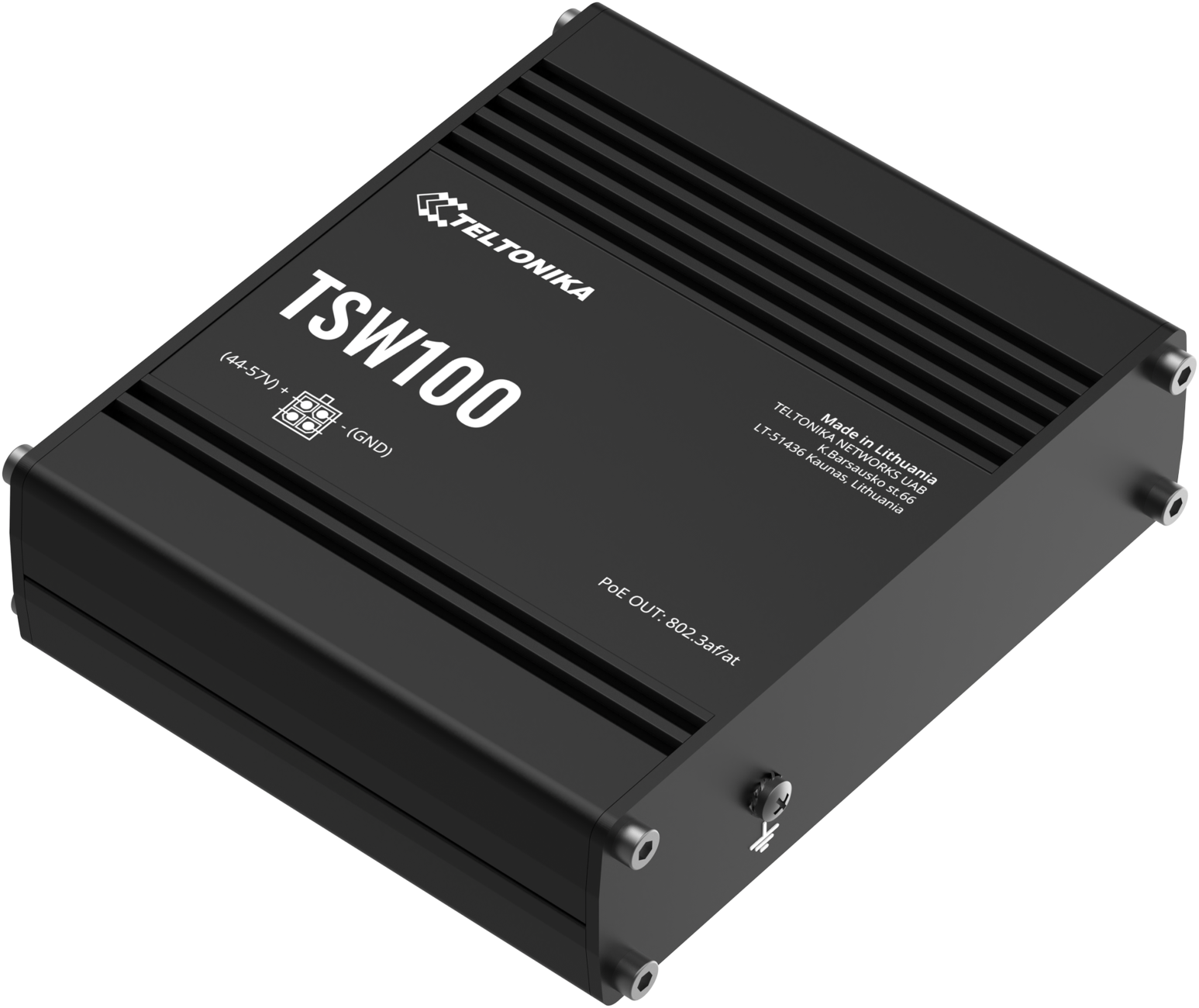 TSW100 ist der erste industrielle unmanaged Switch von Teltonika Networks. Ausgestattet mit fünf Gigabit-Ethernet-Ports, von denen vier die Standards IEEE802.3af und IEEE802.3at Power-over-Ethernet (PoE) unterstützen. Als Stromquellengerät (PSE) klassifiziert, ermöglicht es die Zentralisierung der Stromversorgung, liefert bis zu 30 Watt pro Port und reduziert den Aufwand für die Strominstallation. Es verfügt über 10/100/1000 Mbit/s-Ethernet-Ports für eine wirtschaftliche Lösung mit hoher Bandbreite. Ideal für professionelle Anwendungen mit hoher Bandbreite, die beides bieten: zuverlässige Datenverbindung und Stromversorgung.