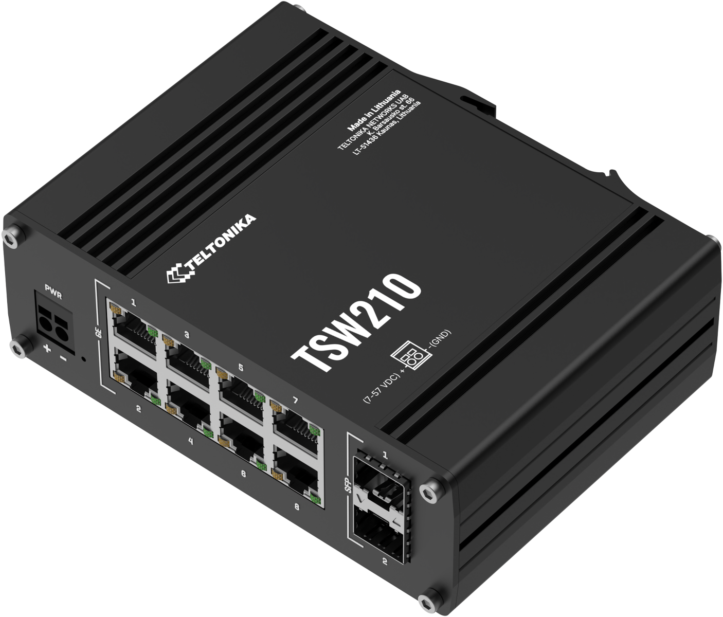 Teltonika · Switch · TSW210 · 8 Port Gigabit Industrial unmanaged Switch, 2 SFP